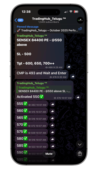 See our real-time updates, chart explanations, and next-day marked levels directly from the channel.